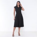 - Conjunto em Linho: Blusa estilo camisa e saia midi.