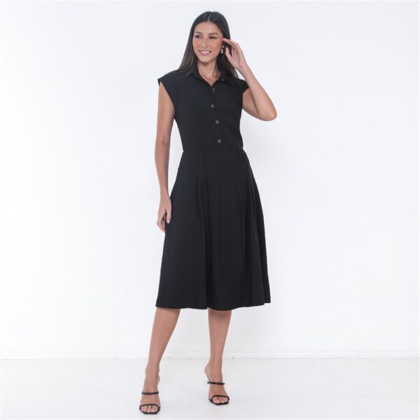 Conjunto em Crepe Marrant, composto por uma blusa estilo camisa e uma saia midi, que exala elegância casual e conforto. Ambas as peças são confeccionadas em Crepe Marrant , um tecido conhecido pela sua respirabilidade e pela textura natural que confere um toque sofisticado. A blusa, com um design que remete a uma camisa, possui colarinho tradicional e abotoamento frontal discreto. As mangas são curtas e levemente caídas nos ombros (estilo “dropped shoulder” ou “cap sleeve”), proporcionando um visual descontraído e elegante. A saia midi, com um caimento em A ou levemente evasê, apresenta pregas suaves que adicionam movimento e fluidez à silhueta. O cós da saia é bem estruturado, garantindo um ajuste confortável. Tamanhos P(40) – M(42) – G(44) – G1(46) – G2(48) – G3(50)